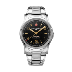 The Chronograph Emilio Carranza brings history to life through a design inspired by 1920s cockpit instruments. The black dial features cream Super-LumiNova® coated indices, a refined applied CyS emblem with red accents, and an engraved airplane motif at 9 o’clock—a direct reference to Carranza’s aircraft.
