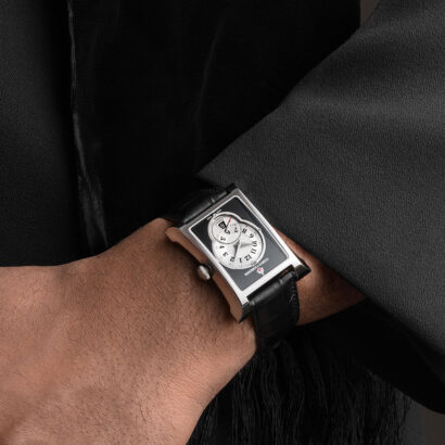 The Espléndidos Heritage features the unmistakable curved rectangular case that first appeared in Cuervo y Sobrinos designs during the 1930s — the brand’s era of greatest international success. This iconic silhouette, revived in its original spirit, embraces smooth lines and sophisticated proportions that wrap comfortably around the wrist, exuding vintage charm and unmistakable Latin soul. Power reserve of 68 hours.