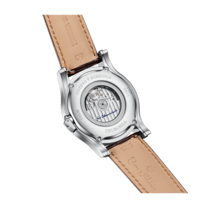 The Cuervo y Sobrinos Churchill 1895 GMT is a new addition to the brand’s Churchill collection. It celebrates the life of the British statesman who visited Cuba on more than one occasion and displayed a fondness for the Caribbean island. The new features are the magnified date display and a dual-time function.