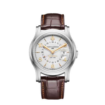Did you know the Churchill 1895 GMT honors Winston Churchill’s early adventures in Cuba during the 1895 War of Independence? This limited edition of 200 pieces features a 43mm stainless steel and titanium case, a guilloché dial, and a magnified date display under sapphire crystal. Its red-tipped GMT hand tracks a second time zone on a 24-hour scale, ideal for the well-traveled. Powered by the Soprod C125 movement, it offers 42 hours of power reserve and is available with a Louisiana alligator strap and stainless steel bracelet.