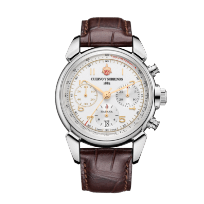Cuervo y Sobrinos proudly unveils the Chronograph Heritage, a timepiece that embodies the brand’s singular identity: Swiss craftsmanship infused with the soul of Cuba. The Chronograph Heritage bridges past and present with elegance, technical sophistication, and a spirit deeply rooted in Havana’s cultural legacy. Power reserve of 60 hours.