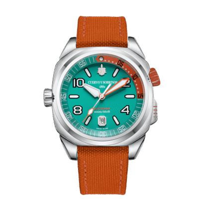 The Buceador Caribe draws inspiration from Cuba’s vibrant marine life and adventurous spirit. Now enhanced with a new Cordura strap perfectly matching the dial’s colorful hues, and a high-quality FKM rubber strap for ultimate comfort and durability, this dive watch blends rugged performance with Caribbean flair—ready for every underwater adventure.