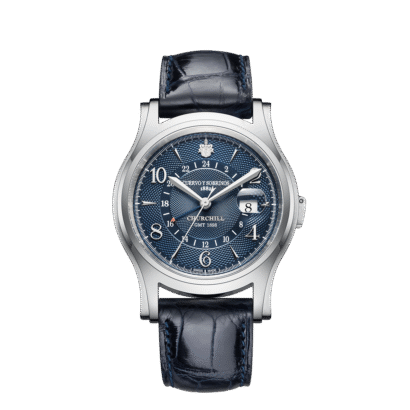 Did you know the Churchill 1895 GMT honors Winston Churchill’s early adventures in Cuba during the 1895 War of Independence? This limited edition of 200 pieces features a 43mm stainless steel and titanium case, a guilloché dial, and a magnified date display under sapphire crystal. Its red-tipped GMT hand tracks a second time zone on a 24-hour scale, ideal for the well-traveled. Powered by the Soprod C125 movement, it offers 42 hours of power reserve and is available with a Louisiana alligator strap and stainless steel bracelet.