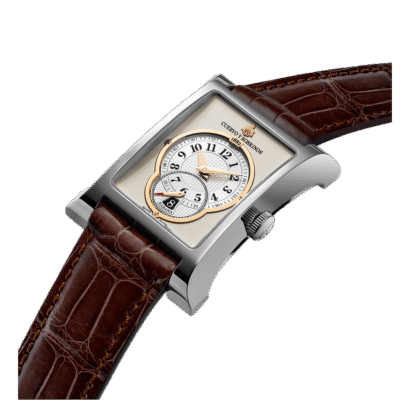 Rose gold color hours, minutes and small seconds. Red-tipped small seconds hand