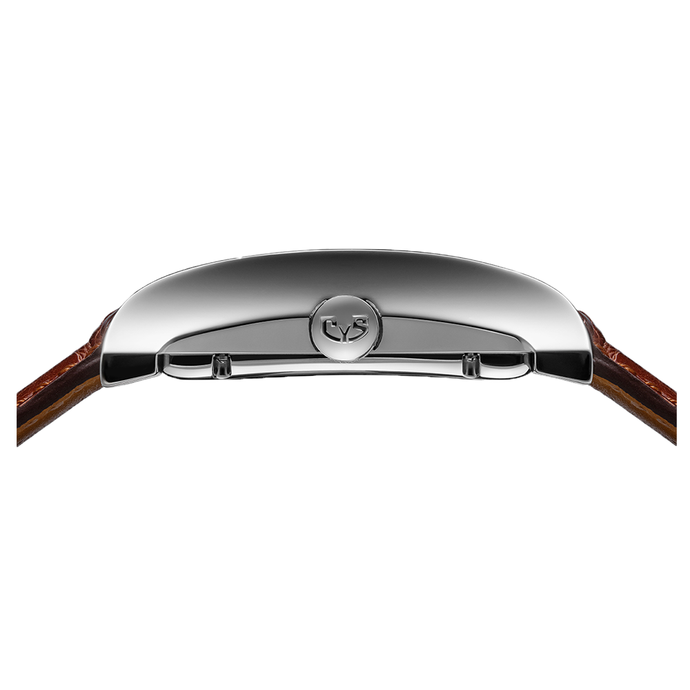 Champagne and silver dial, black applied index, silver and red applied CyS emblem. Multi-level lacquered dial, applied ring screwed-in, Clou de Paris-style center
