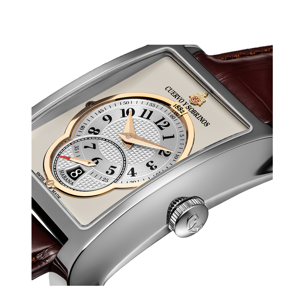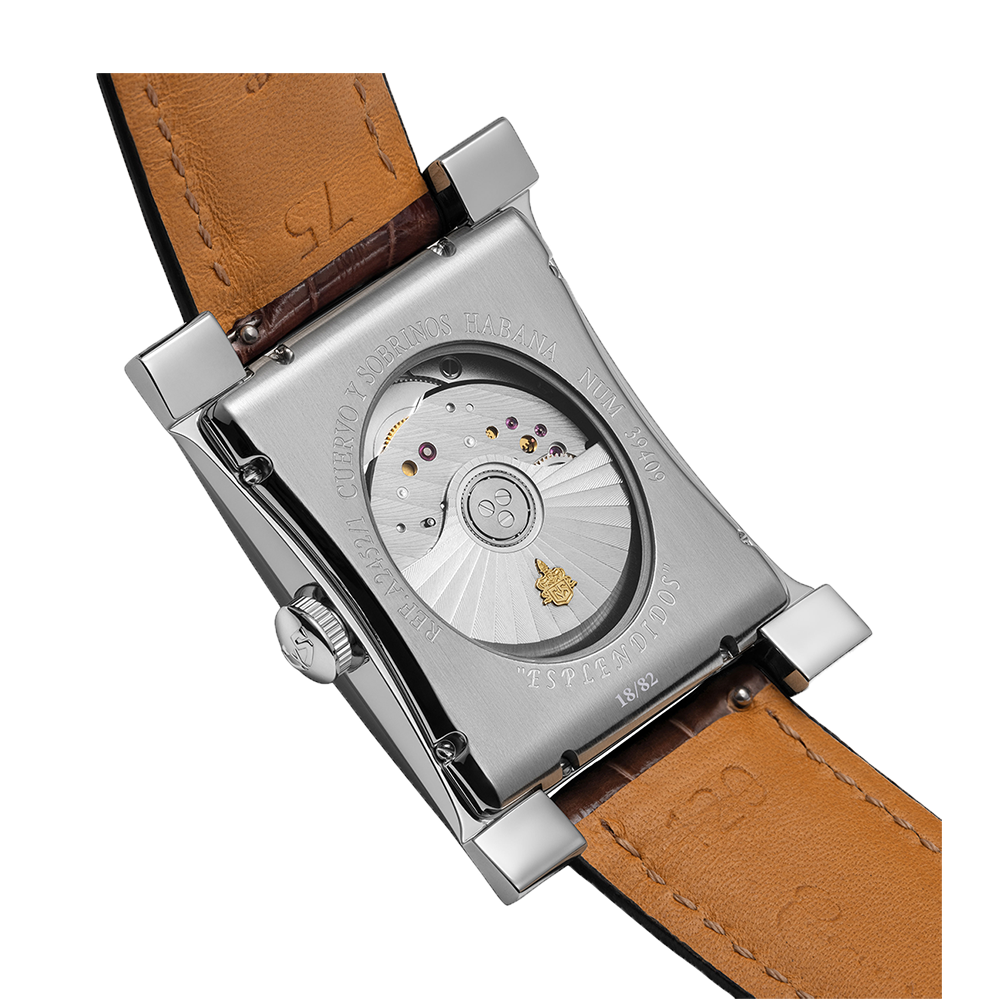 At Cuervo y Sobrinos, we proudly celebrate our Cuban soul with Swiss precision. The new Espléndidos Heritage collection revives an iconic case design from the 1930s — our golden age — blending timeless elegance, artisanal details and exceptional mechanical performance. Each watch embodies our motto “Born in La Habana”, featuring layered lacquered dials, our distinctive fan-shaped oscillating weight visible through the sapphire case back, and a premium La Joux-Perret movement with a 68-hour power reserve.