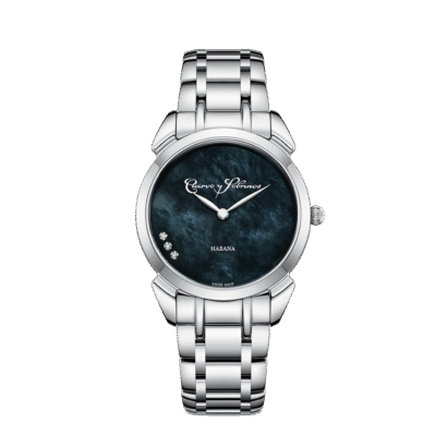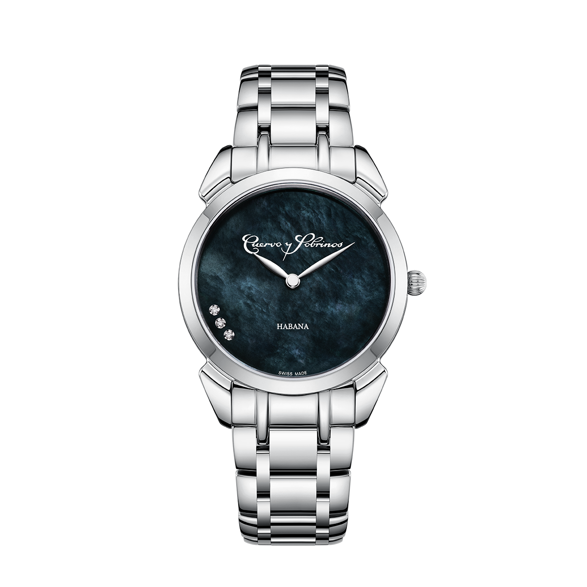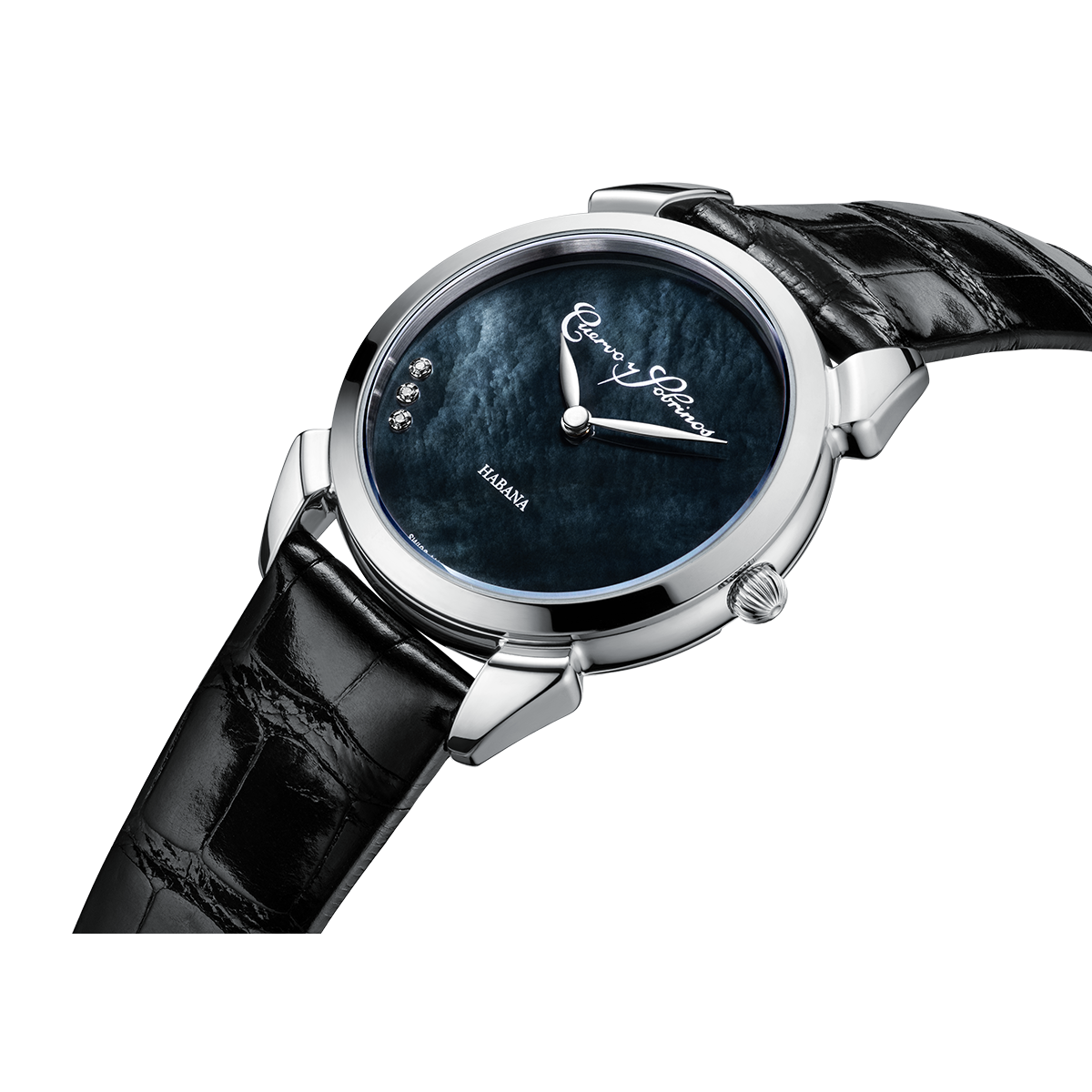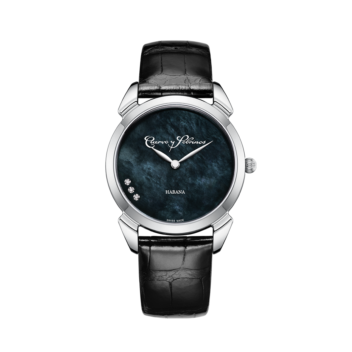 Did you know the Primera Dama draws inspiration from the glamorous 1930s Havana, a time when the city was a hub of luxury, music, and dance? This elegant timepiece features a 36mm stainless steel case and a mother-of-pearl dial adorned with diamonds, adding a touch of sophistication. . The watch is available with a glossy Louisiana alligator strap and a matching stainless steel bracelet.