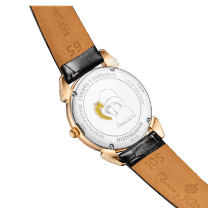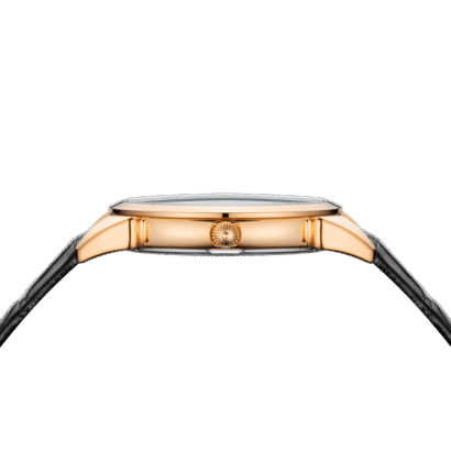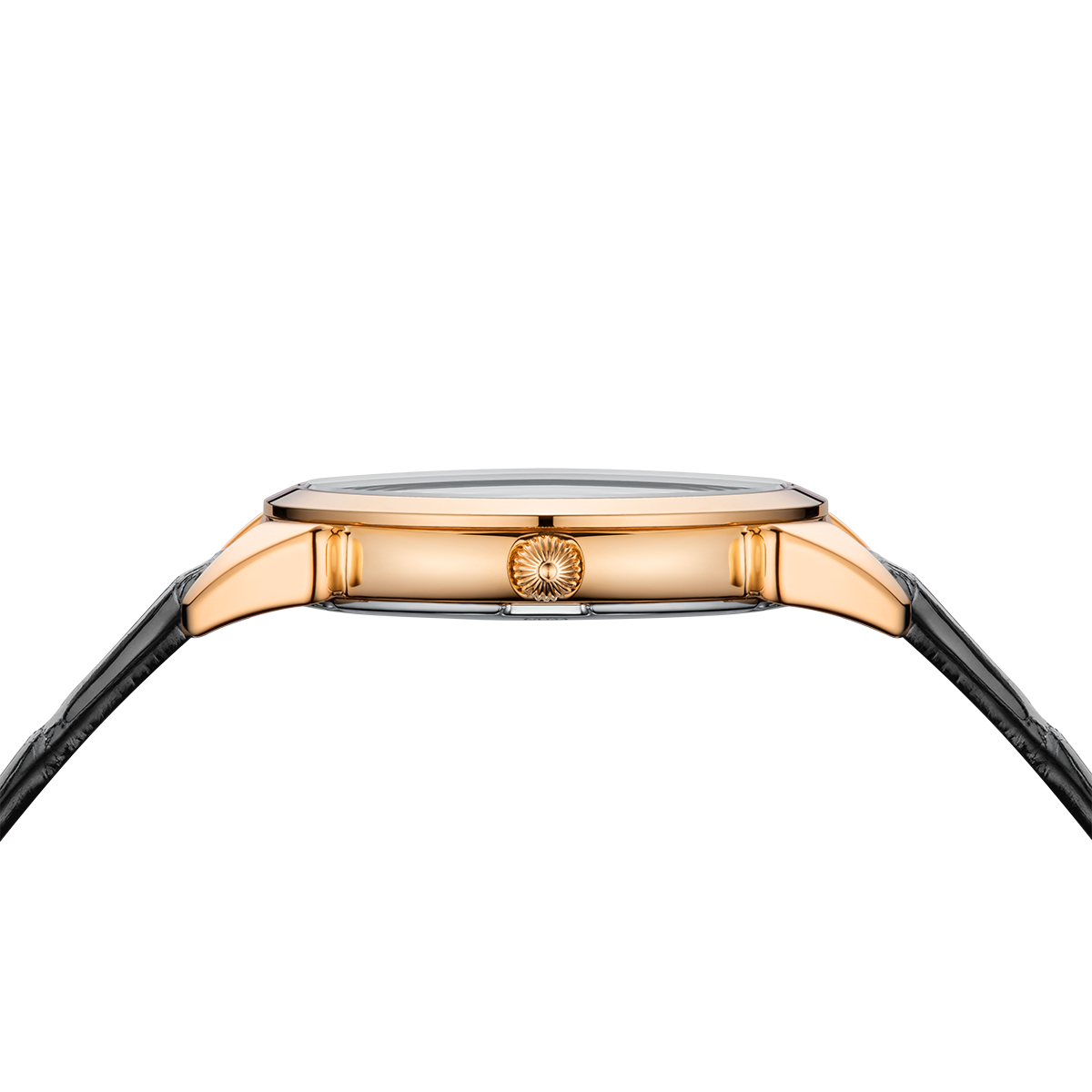 Stainless steel with PVD treatment, diameter 36 mm, height 7.8 mm, double curved sapphire crystal with anti-reflective coating, water resistant to 5 ATM, screwed with 4 screws