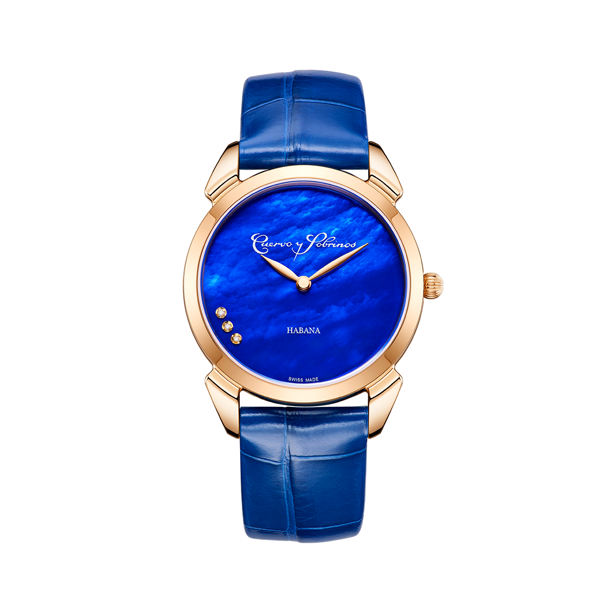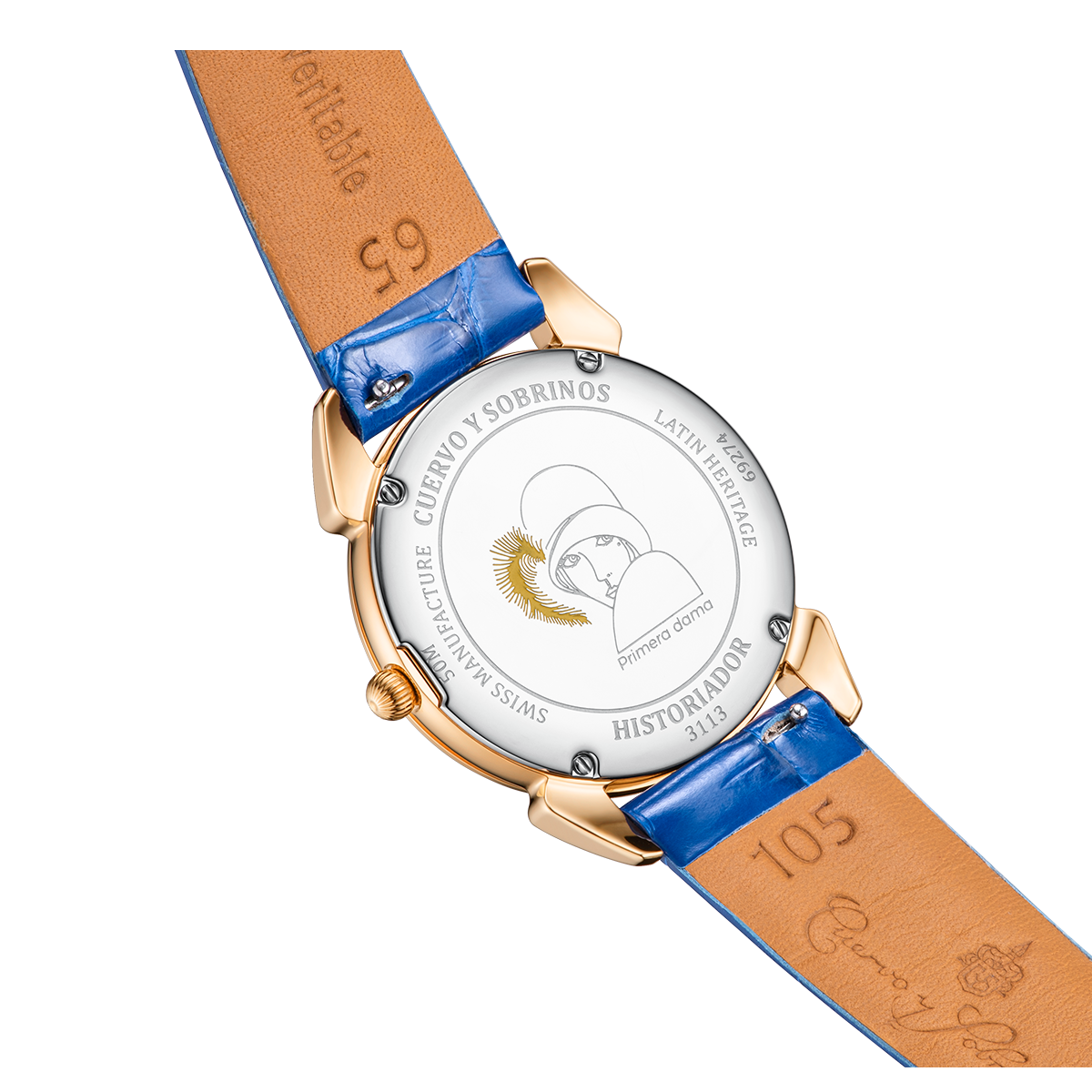 The Cuervo y Sobrinos Historiador Primera Dama is inspired by 1930s Havana, a world in which dancing, music, and hedonistic pleasures were the order of the day. Feminine and elegant, this ladies’ watch, which features numerous appealing details, is suitable for any occasion.