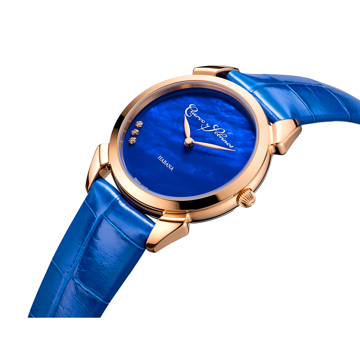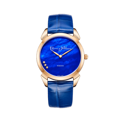Did you know the Primera Dama draws inspiration from the glamorous 1930s Havana, a time when the city was a hub of luxury, music, and dance? This elegant timepiece features a 36mm stainless steel case and a mother-of-pearl dial adorned with diamonds, adding a touch of sophistication. The watch is available with a glossy Louisiana alligator strap and a matching stainless steel bracelet.