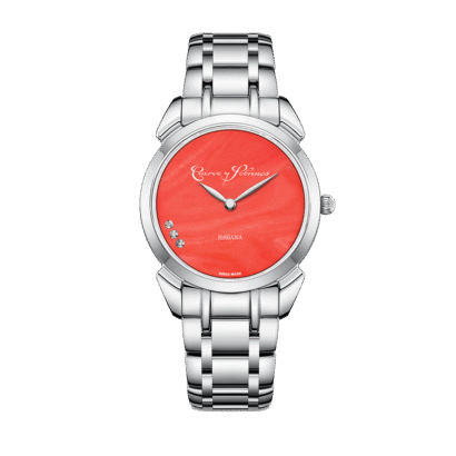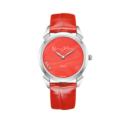 Did you know the Primera Dama draws inspiration from the glamorous 1930s Havana, a time when the city was a hub of luxury, music, and dance? This elegant timepiece features a 36mm stainless steel case and a mother-of-pearl dial adorned with diamonds, adding a touch of sophistication. The watch is available with a glossy Louisiana alligator strap and a matching stainless steel bracelet.