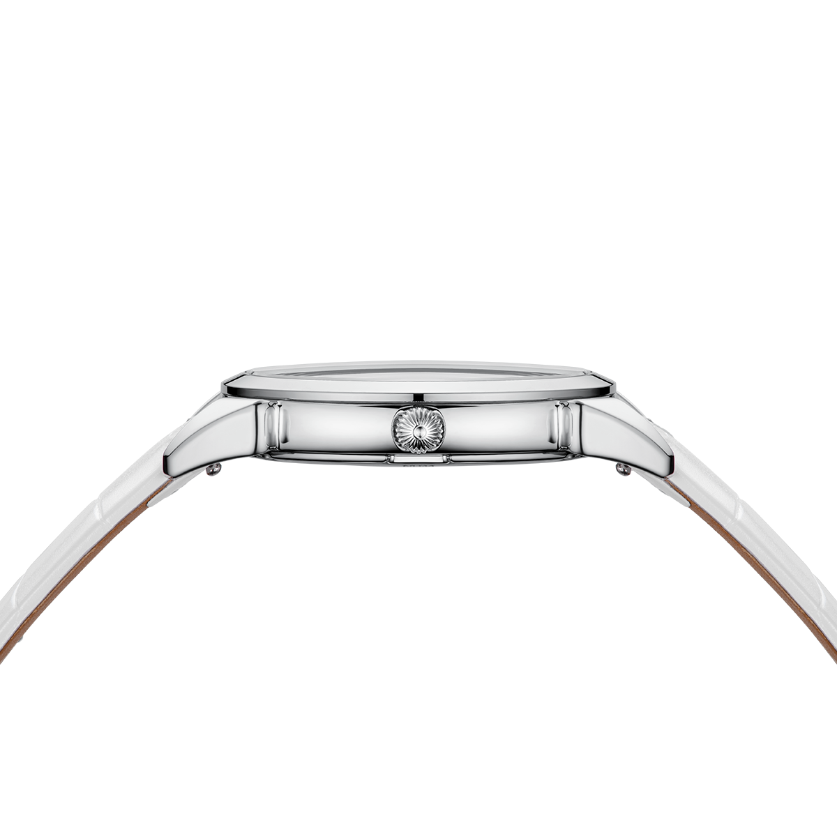 Stainless steel, diameter 36 mm, height 7.8 mm, double curved sapphire crystal with anti-reflective coating, water resistant to 5 ATM, screwed with 4 screws