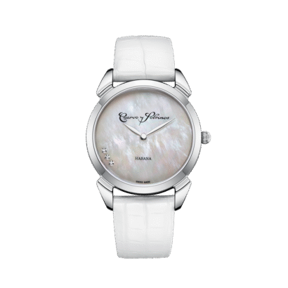 Did you know the Primera Dama draws inspiration from the glamorous 1930s Havana, a time when the city was a hub of luxury, music, and dance? This elegant timepiece features a 36mm stainless steel case and a mother-of-pearl dial adorned with diamonds, adding a touch of sophistication. . The watch is available with a glossy Louisiana alligator strap and a matching stainless steel bracelet.