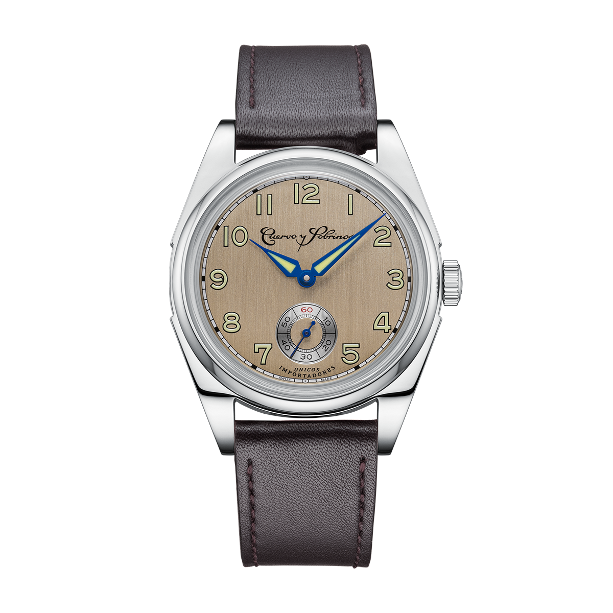 Step into the glamor of 1950s Havana: the Robusto Sans Souci honors the legendary Sans Souci cabaret located just outside the city — a magnetic playground for jet‑setters and entertainers. Housed in a vintage‑chic 38.5 mm stainless steel case with a sapphire “box” crystal, this timepiece is powered by the automatic Sellita SW 261 movement, offering a 38‑hour power reserve. Its sunray‑brushed dial features bold Arabic numerals and blued or bronze hands filled with Super‑LumiNova®, while a subtle small‑seconds register at 6 o’clock adds nostalgic flair.
