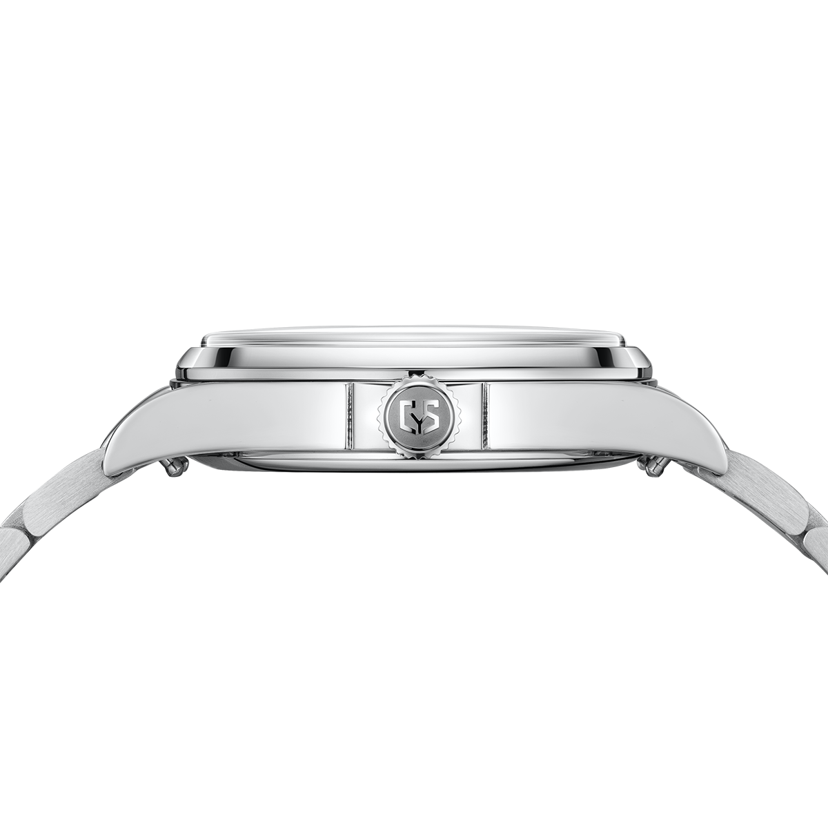 Stainless steel, Diameter 38.5 mm, Height: 11.10 mm, Sapphire crystal with anti-reflective coating, Water resistant 5 ATM, Engraved “Sans Souci” logo case back